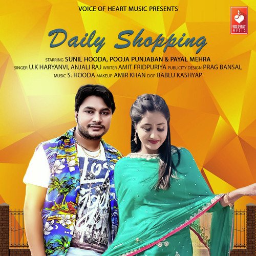 Daily Shopping is sung by Anjali Raj. Music composed by S. Hooda. Lyrics written by Amit Fridpuriya. Released on 2021-01-15. Label: Voice Of Heart Music.
